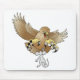 A hawk swoops down on a tiny mouse with sharp talons ready to grab the helpless but defiant mouse.