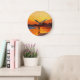 It's always beach time with this deeply colored sunset clock. This image was taken on a beautiful beach in Carpinteria, California, as people were enjoying the glowing rays, finishing up their sandcastles, and seeking the last few shells. The photograph was then colorized so it looks more like a painting, with deep oranges and blues. I hope you'll enjoy this beach-theme clock in your home, your beach home, or giving it as a gift. You can change the color of hand or choose a different shape if you like.