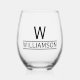 Last Name and Monogram Initial Personalized Stemless Wine Glass