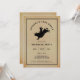 Celebrate the groom’s final days of freedom with this "Last Rodeo" Bachelor Party invitation. Featuring a vintage parchment-style background and a bold black silhouette of a bull rider, this card captures a rugged, Western aesthetic perfect for a night out or a trip to the rodeo. The classic typography and double-border frame give it a timeless, masculine feel. This template is 100% customizable: easily update the name, date, time, and location to fit your specific event. Whether you're heading to a real rodeo or just hosting a backyard BBQ with the boys, this invitation sets the perfect tone for a wild weekend.