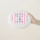 "Get the party going with a fun and active twist on your bachelorette celebration! The "Last Sail Before The Veil" bachelorette frisbee is the perfect way to keep things lively and exciting. Featuring the playful phrase in bold navy blue, accented with pink and white nautical stripes, this frisbee is both a fun game and a memorable keepsake. Whether you're celebrating at the beach, park, or backyard, it’s the perfect way to engage your bridal party in some outdoor fun. Let the bride-to-be make her final sail with some high-energy fun before the big day!"