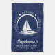 Nautical blue and white bridal shower / bachelorette party garden flag with sailboat and phrase "last sail before the veil". Personalize it with your event details.