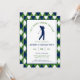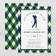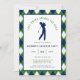 Celebrate the groom-to-be with a day on the links! This golf-themed bachelor party invitation features a classic navy, green, and white argyle pattern border that perfectly captures that country club aesthetic. The center displays a clean silhouette of a golfer mid-swing, paired with the clever "Last Swing Before the Ring" headline. This template is fully customizable, allowing you to easily update the name, date, tee-off time, and location details. Whether you're planning a full 18 holes or a casual afternoon at the driving range, this preppy and professional invite sets the right tone for a sophisticated celebration.