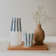 The look of these cups are a preppy take on luxury relaxation. It's a hearkening back to a time of old-money sophistication, with vintage vignettes and luxury labels. Pristine whites and horizontal stripes are the characteristic of this look. Think polo shirts and boat shoes. The quiet luxury and stealth wealth is like “comfort food". Its something nostalgic, solid and familiar.