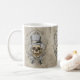 Cool skull art design features skull wearing hat with owl peeking from behind. Two crossed guns and super detail with swirls and text art.