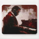 "Late Night Bar Pianist" captures the soulful essence of a man playing piano in a dimly lit bar. The artwork primarily employs a bold palette of red, black, and white, with subtle hints of gold, creating a striking visual contrast and evoking a sense of warmth and passion.