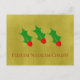 Say Merry Christmas in Latin with this felicem natalem Christi postcard with green leaves and red holly berries.