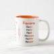 A perfect mug for either a teacher or a learner of Latin. Three irregular verbs are here conjugated in the present tense, in orange and black lettering, emphasising the endings. These are common verbs, essential to a basic grasp of the language, but fun to learn while you have your tea or coffee break. Amare (to love), habere (to have), facere (to make or do).