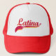 Red and yellow worn out / grunge text hat design for proud latinas.
