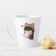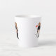 White mug with a cute drawing of a girl drinking on her mug on a cold day.