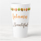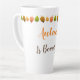 This large size latte mug is shown with a festive autumn leaves print, Autumn is beautiful.