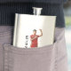 The product is a good size and came exactly as it was pictured. The lid is not attached to the flask, which could be dangerous on drunken nights... The print came out surprisingly well and looks very sharp. Would definitely recommend.