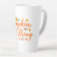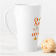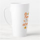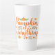 This large size latte mug is shown with a cute pumpkin spice and everything nice print.