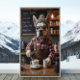 This poster features a squish-faced French Bulldog in red and white flannel, behind a quirky café counter with latte art in the works. His intense barista stance, stylish glasses, and jittery paw movements hint that he’s sampled a bit too much of his own brew. With humorous drink names like “Furpress” on the menu board, this playful artwork brings personality to coffee nooks, cafés, or dog-themed home décor.