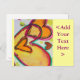 Peach and orange hearts connect like blowing bubbles drift together. A green outline traces each heart. Pale yellow color dots are like confetti between the hearts. The watercolor painting has a light layer of gold and pink on top. Personalize this postcard with your own text and images.