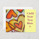 Peach, pink, and orange hearts cross over each other like clouds drifting in a sky. A green outline traces each heart. Pale yellow color dots are like confetti between the hearts. The watercolor painting has a light layer of gold and pink on top. Laugh hearts are a detail from Inspirational Word "Laugh" painting. Personalize this postcard with your own text and images.