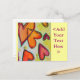 Peach, pink, and orange hearts fly across the painting like loose fall leaves caught in a breeze. A green outline traces each heart. Pale yellow color dots are like confetti between the hearts. The watercolor painting has a light layer of gold and pink on top. Laugh hearts are a detail from Inspirational Word "Laugh" painting. Personalize this postcard with your own text and images.