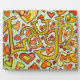 The word "Laugh" is painted in a bright, happy yellow against a speckled lime green background. A orange, red, and pink hearts dance through the painting like the rise of fall of laughter. Personalize this art painting with your own text or images using the "Customize It" option. It makes for a great patient or caregiver support gift!