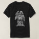 My 11 yo wore adult XL (5’7” 165#). The 8yo is small framed. She wore adult small and tied it in the back. Grandma wore adult large with long sleeve shirt underneath. Tall girl adult medium. Dark haired male adult large. Good quality dark Heather gray, Gildan brand shirt. -it was next up from basic choice and cost about $20 per shirt. Not too thick or thin. Washed and dried well, no major shrinkage. Not see-through. Can wear a bra under it fine. Screen print is just as shown and well done, front and back.