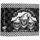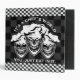 Keep your best recipes or chef notes in this funny chef skull recipe binder, which features a fun trio of laughing (possibly wasted) chef skulls, wearing chef chats. One is wide eyed, one is winking, and the center chef skull is laughing so hard, he cannot keep his eyes open. These three hysterical chefs are serving up a message that reads It's a chef's world. You, just eat in it. A black and dark gray checkered panel runs across and behind the skulls. The image was designed especially for the executive chef, sous chef, line cook, home cook, or anyone with a fierce passion for cooking. And skulls.