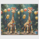 Smiling cartoon giraffe in jungle with balloons. Great design for wrapping presents for kids of any age.