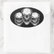 Be the life of the party wearing this funny laughing skull trio product, featuring three metallic-like laughing skulls. The skull trio includes a wide eyed skull, a winking skull, and a skull laughing so hard, he can't keep his eyes open. Designed for all who love a good laugh: comedians, jokers, pranksters, and life of the party. Add your own text, for a personalized touch. These good humored, comical skulls will always have the last laugh.