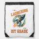 Blast off into a brand-new school year with this "Launching into 1st Grade" design! Featuring colorful rocket ship soaring to the stars, perfect for your little explorer’s first day back. The playful design captures the excitement of entering first grade, making it a fun and memorable outfit for photos.