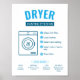 Create professional tumble dryer instructions posters using this modern white and blue Dryer Instructions poster design. Featuring pastel blue and white colors, dryer graphic, trendy fonts and a minimal layout. You can edit all text, colors and even add your logo! Create custom appliance instructions for tumble dryers to display in your laundromat.