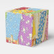 Classic square favor box with a fun image of colorful fabric swatches on a clothesline held by wooden clothes pins. See the entire Kids’ Corner Favor Box collection in the PARTY FAVORS section.