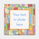 Square customizable magnet with a fun image of fabric swatches on a clothesline held with wooden clothes pins. See the entire Kids’ Magnet collection in the PARTY FAVORS section.