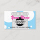Laundry service dry cleaner business card template. Personalized company car with soap bubbles design and washing machine. Blue or custom colors. Professional visit card for cleaning, washing, pickup, delivery and more. Also handy for other clothing services and appliance repair.