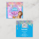 Laundry Washing Cleaning Services QRCode Blue Pink Square Business Card