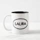 Check out this Laura mug! Is your name Laura? Or do you have a wife, girlfriend, female family member or female friend named Laura? If so, this "Name Stamp" mug is exactly the gift that you're looking for! The design features "Laura" in big black lettering surrounded by two ovals, one thin and one thick.