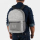Carry your essentials in style with our custom backpack, featuring a classic houndstooth pattern and personalized with a simple monogram initial framed in a timeless laurel crest. This versatile backpack is designed for both form and function, offering spacious compartments, adjustable straps, and durable construction. Customize the colors to suit your personal style or make it a thoughtful gift. Perfect for work, school, travel, or everyday use, this backpack combines elegance and practicality for a standout accessory.