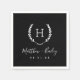 This modern rustic logo-style design has a laurel branch frame with your monogram initial. Personalize the template with the bride and groom's names or monogram initials. Add your wedding date, the city, state or venue name or any other custom text. Use the design tools to choose any colors, edit the fonts or upload your own photos to create custom wedding cocktail napkins to match your wedding colors and style!