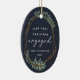 Celebrate your first Christmas as an engaged couple with this charming and festive ornament. Design features "our first Christmas engaged" in modern block and script lettering, surrounded by a faux gold foil border accented with green winter leaves. Personalize with your names and the year, and add a photo to the back with a matching golden geometric frame.