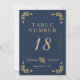 Laurel Leaf Typography Navy Blue Gold Table Number