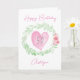A green watercolor laurel and pink flowers with a pink watercolor heart featured on the front of this personalized 50th birthday card for her. You will be able to easily personalize the front with her name and birthday message inside. This would make a wonderful 50th card keepsake for her.
