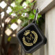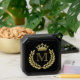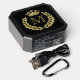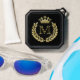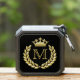 black and gold speaker with gold colored laurel wreath and crown emblem to personalize with your initial.