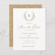 Elegant Laurel Wreath Monogram Crest Wedding Save the Date Card. Traditional Wedding Save the Date Invitation. Golden Wreath Monogram Crest Save the Date Card