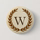 A delicate laurel wreath is layered over a parchment paper background in the classic Roman style. This design is personalized with the monogram "W" in a rich sienna tone.