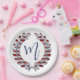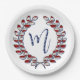 Laurel Wreath Red, White and Blue Stars and Stripes Pattern Monogram M Patriotic Party 4th of July Party or Your Event, Elegant Monogrammed Paper Plates