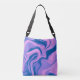 Beautiful lavender and blue liquid marble design on crossbody tote.