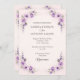 Celebrate your special day with this dreamy watercolor invitation. Lush arrangements of lavender roses with a blush background, accented with hints of greenery, appear as if hand-painted across the card. The soft, textured artwork creates a serene and feminine aesthetic, while a modern, clean-lined text layout provides a polished contrast. Paired with a lilac or blush envelope and an optional ribbon belly band, this suite sets a whimsical and romantic tone for your guests.. This wedding invitation is part of a complete set.