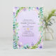 Lavender and gold geometric couples shower invitation with translucent greenery.