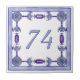 A hand drawn purple frame around a house number with dark blue outlines and a pattern in the corners.