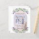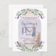 A white background decorated with lavender flowers, eucalyptus greenery and an arch frame for your photo. Personalize and your names and details.
