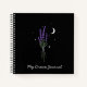 A spray of lavender against a starry night and crescent moon. Lavender has been used for ages to improve sleep. This could make a lovely Dream Journal or a place for your night thoughts.