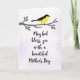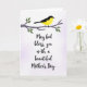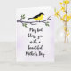 Designed with a calm nature scene, the card features a small bird perched on a thin branch near the upper part of the front. The bird is bright yellow with a black head and darker wings, and its gentle posture suggests a quiet, friendly closeness ❤️. A pale lavender background sits behind everything, giving the artwork a soft, airy look without distracting from the main subject. Below the illustration, a flowing, calligraphic-style message is placed prominently in the lower half, written in crisp black lettering. The branch stretches lightly across the scene with a few green leaves, and the bird’s attentive tilt feels like it’s listening to someone nearby. The mix of soft background color and sharp text creates an intimate contrast, like a private note shared between friends 🌼. Fine brush-like texture shows in the branch and leaves, with the bird resting just above the dark message on the lavender field.
