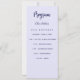Program and menu card. Personalize and add your name, date and the menu. Lavender, violet background color.